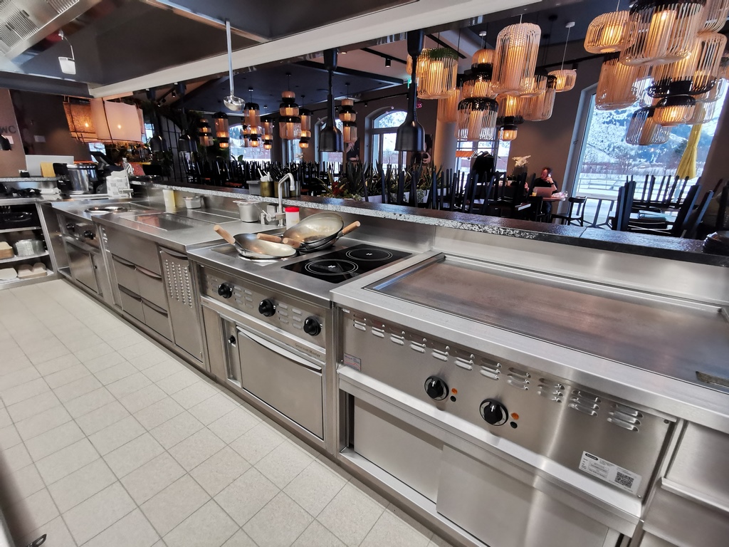 Nayati kitchen at Nooba Andermatt featuring modular equipment for Asian cuisine in Switzerland