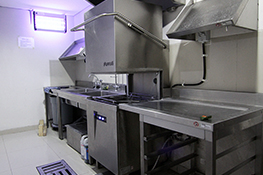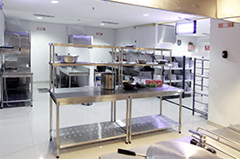 Inside the administration of the nutritional department, the apparatus is fully equipped with chrome-nickel steel appliances from Nayati. Neutral counters, shelves, and refrigeration furnished its preparation area fittingly. Several gas fryers are outfitted as auxiliary along with few of Oriental Series like the wok and stock pot cooker from Nayati. While the main cooking area is outfitted with gas-powered Meritus 750 lines, including boiling and tilting braising pan, for a balance between power and portability.