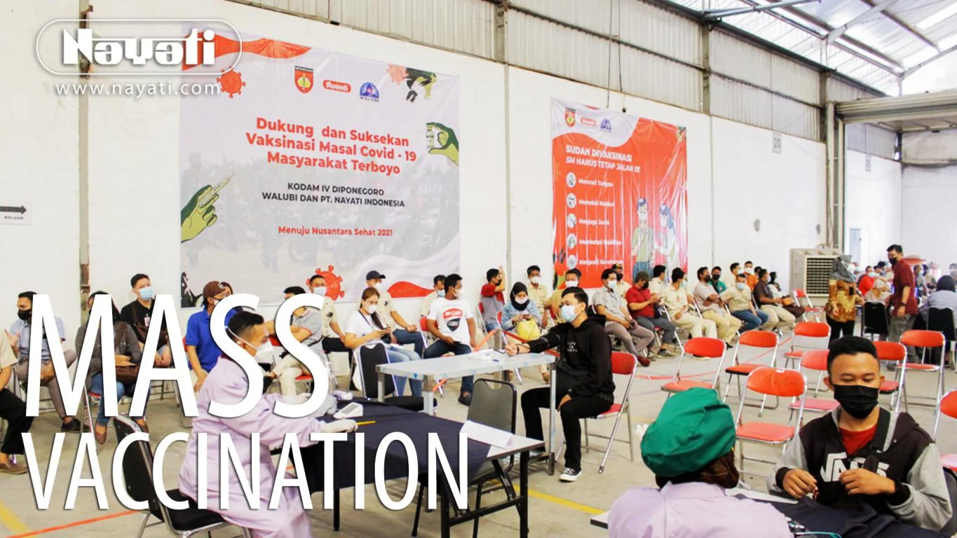 During the day of the 7th of July, the internal task force team from Nayati operated together with the Military Area Command (Kodam) of Semarang, held a first dose mass vaccination right on the factory floor of PT. Nayati Indonesia. And just recently, on the 8th of August, the second dose has been successfully administered as well, ensuring each member of PT. Nayati Indonesia as fully vaccinated citizens and better protected against the pandemic.
