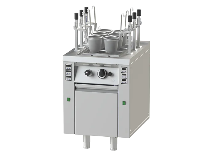 Professional Noodle Cooker with fast boiling time. Automated lifting feature is available for seamless operation in high traffic kitchen usage.