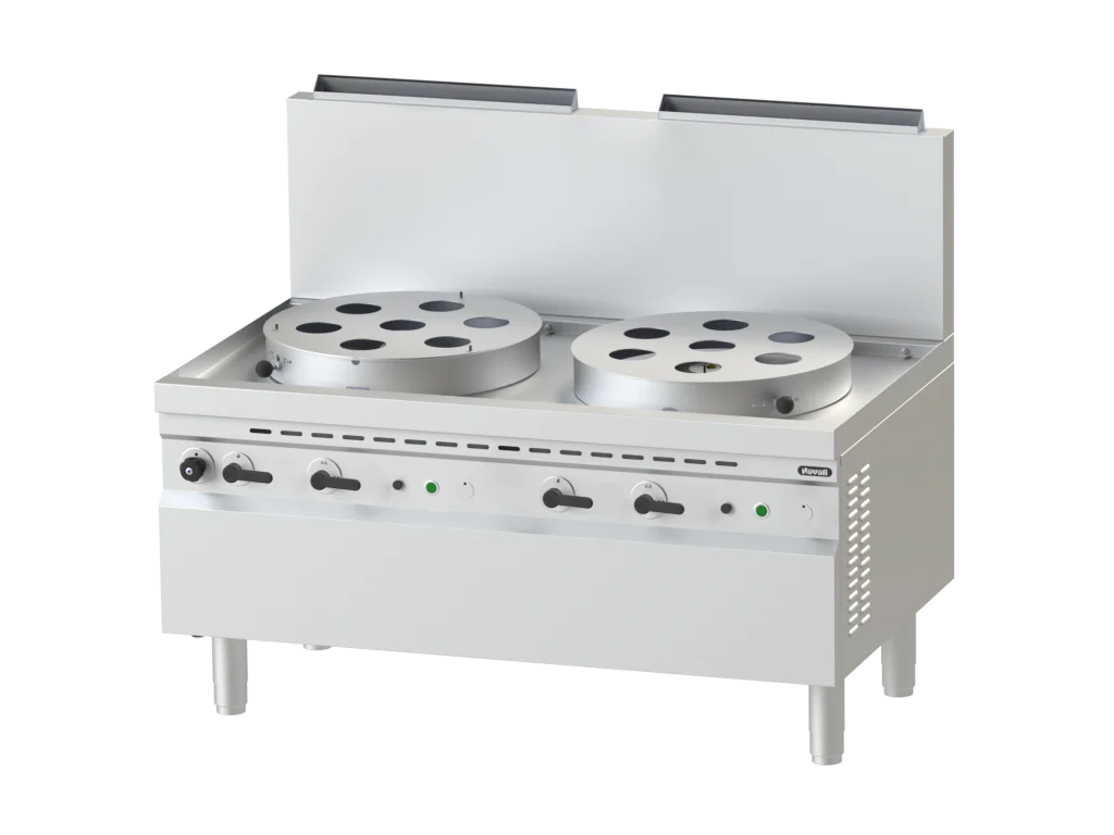 Gas Wok with Soup Warmer with Premix Engine Burner. Top Panel Constructed with deep drawn dome for both the wok and the soup warmer. Includes Wok Holder and Wall-Mounted Faucet. Lever is positioned at knee level for ergonomic operation of an oriental. Compatible installation with others 90 Wok Range Series.